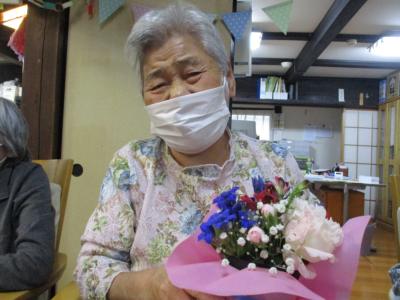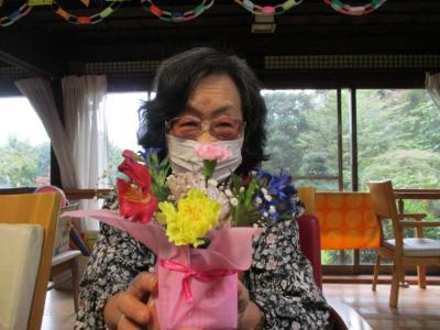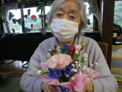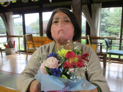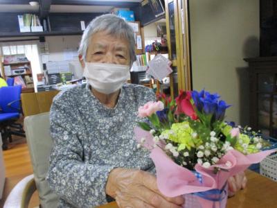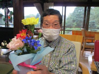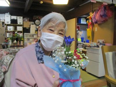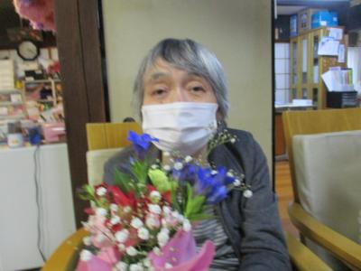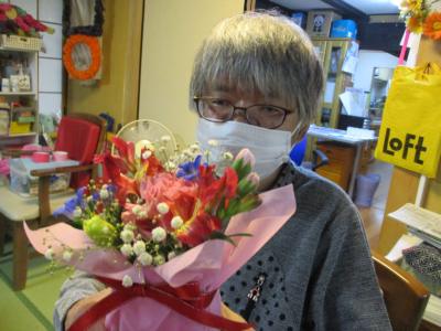 本日のお花はリンドウ、カーネーション、トルコ桔梗、
