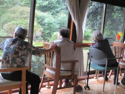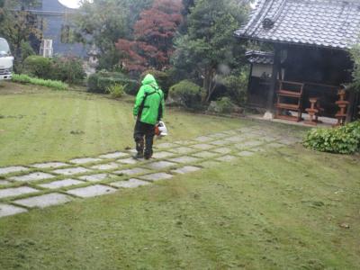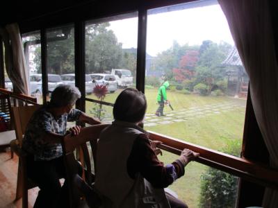 雨の降る中、愛の幸望庵のために庭師さんが頑張ってくださいました