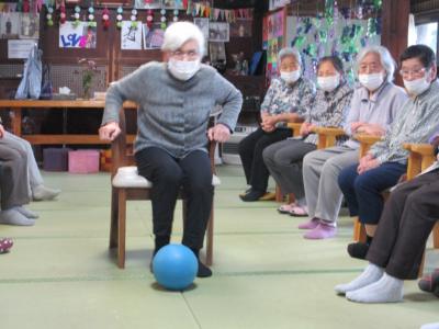 ストレッチボールを使った体操では