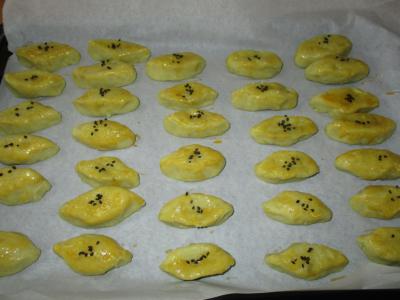 オーブンで焼く前に、溶いた卵黄を塗ってアクセントに黒ゴマをちょこんと乗せます