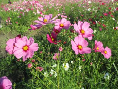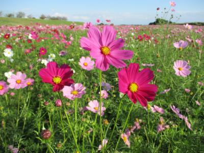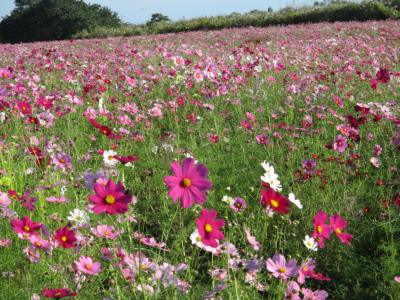 赤、ピンク、白など約1000万本のコスモスが見頃を