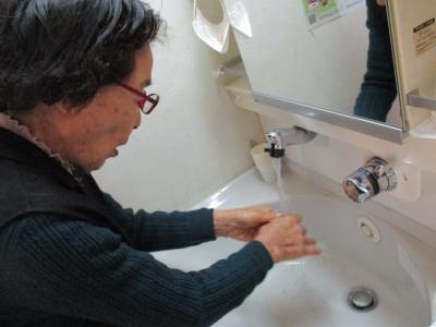 石鹸を泡立てて手首から爪先まで念入りに手洗い