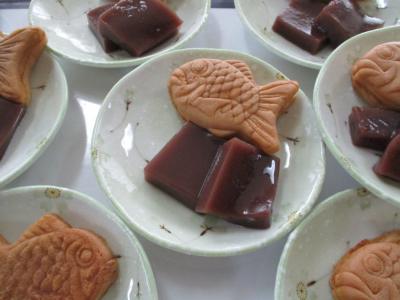 水ようかんとミニ鯛焼きを召し上がっていただきました