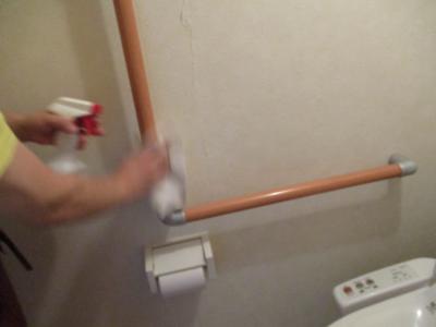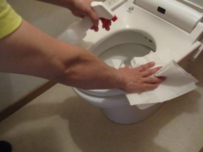 利用者さまが使用するトイレも消毒を行い