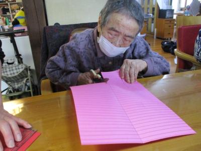 台紙に糊をつけて貼っちゃいましょー