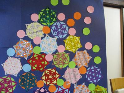 事前に皆さんで作ったキラキラオーナメントも