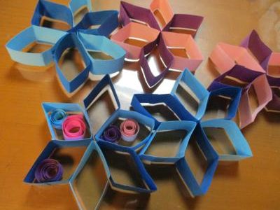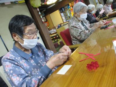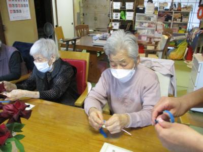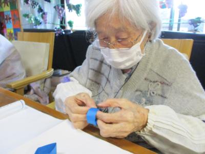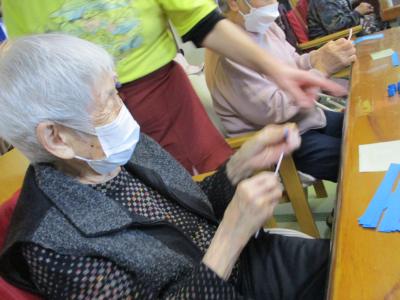 ストローを使って色画用紙をクルクル巻いていくのですが、