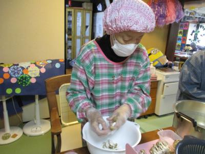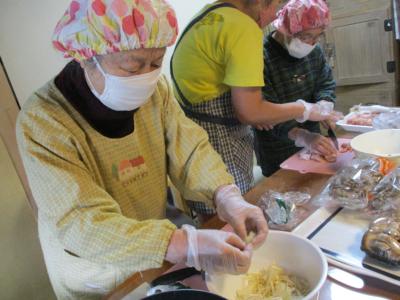 母たちの手によって食材がいろんな形に変わっていきますよ~