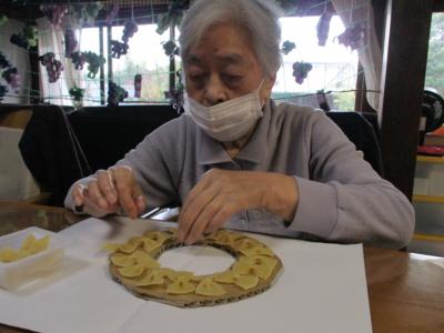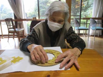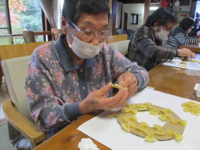 今日は、手工芸にて季節のリース作りをスタートです\(^o^)/