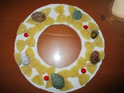 リースの土台に、それぞれリボンパスタを乗せて行き各々お好きなように