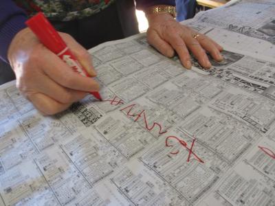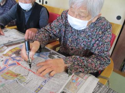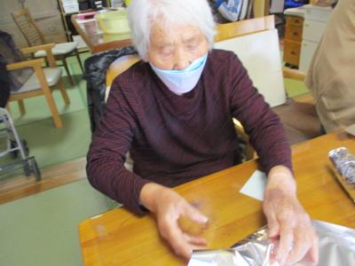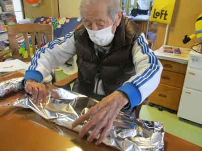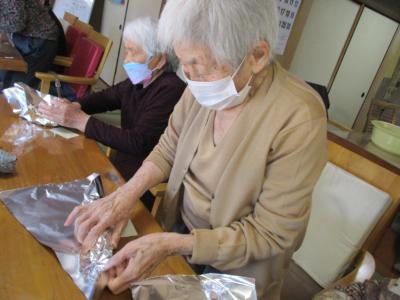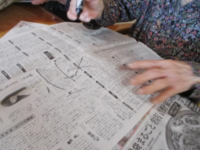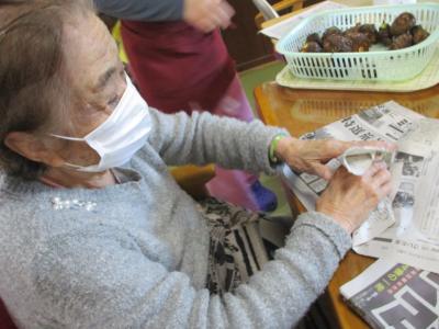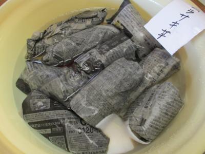 さつま芋の種類が分かるように新聞紙に名前を記入して