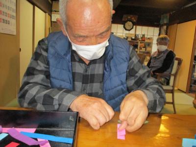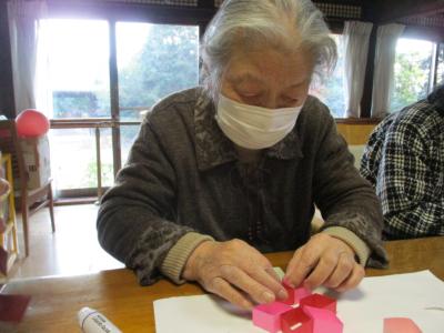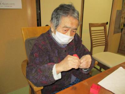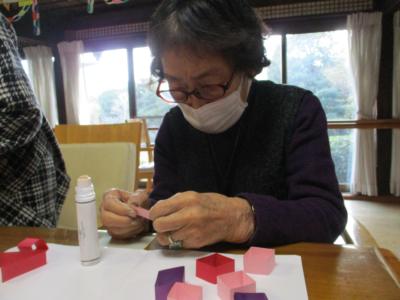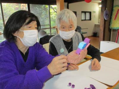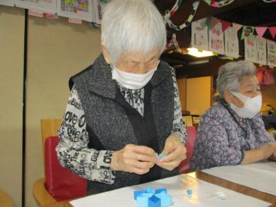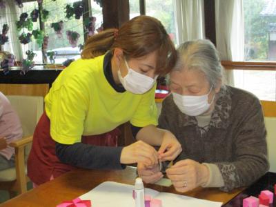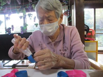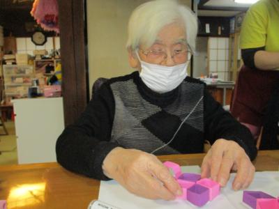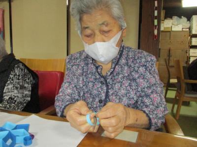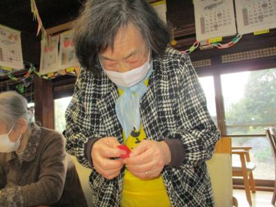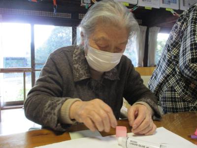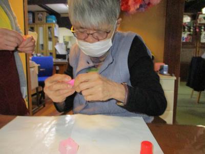 いつもはお茶目なお母さんも、手工芸のお時間は真剣です