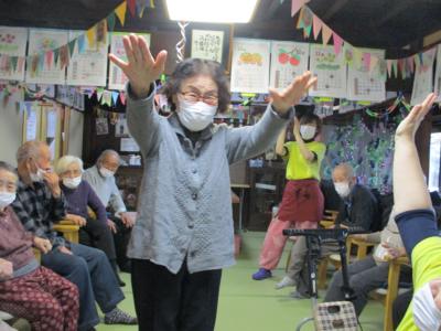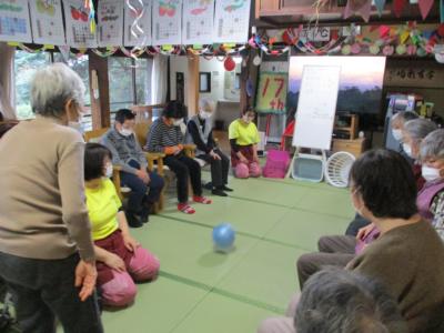 いつもでしたらごぼう先生と一緒に体操を楽しむんですが