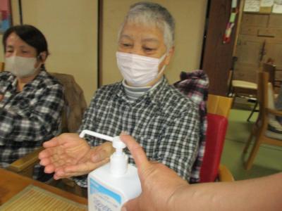 手指の消毒は、朝だけでなく昼食前やおやつ前の他 手洗い後にも小まめに