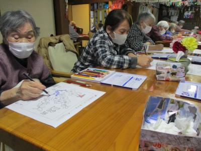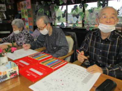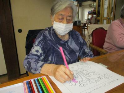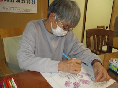 各々下絵を選び終わりましたら早速塗り絵スタートです