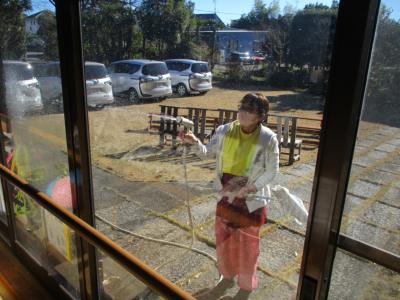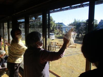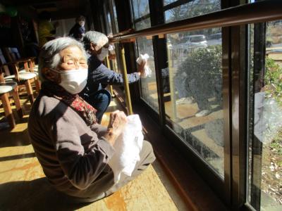 今日はみんなで機能訓練が終わった後に窓ふきを行いました