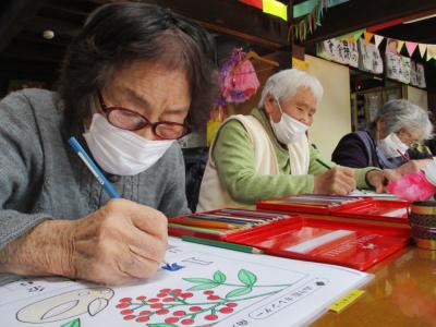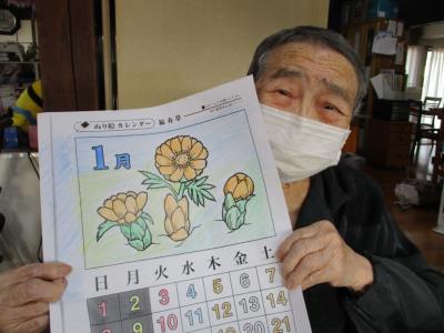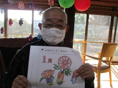 午前中は一月のカレンダー塗り絵に取り組まれます