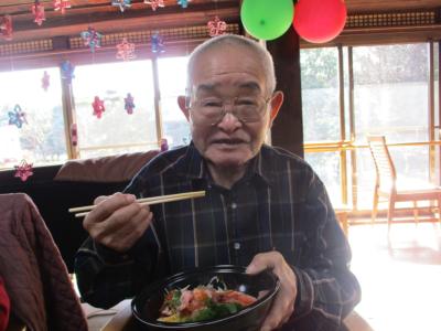 利用者さまの席には新年の挨拶と華やかな