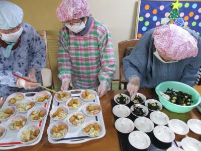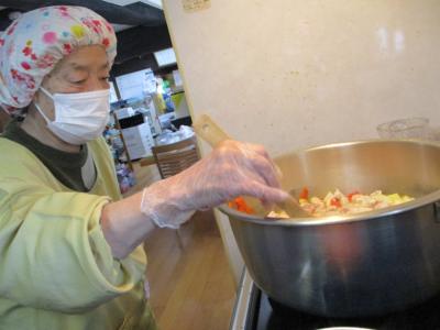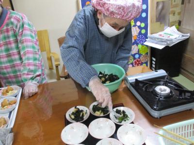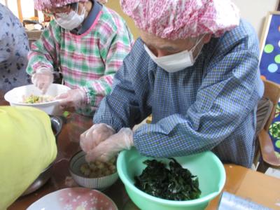ワカメも大きいものはカットし、皆さんが食べやすい様にしていきます