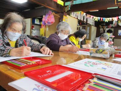 身体を動かすだけではなく、脳トレの時間では塗り絵や計算問題などに集中して取り組まれています