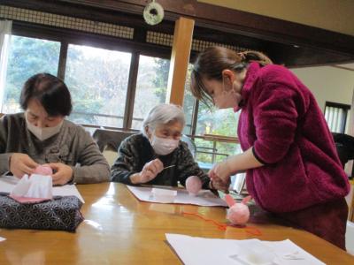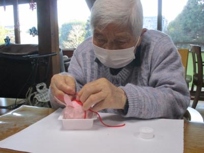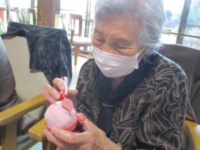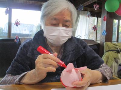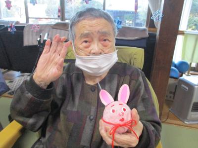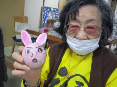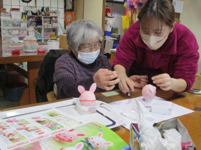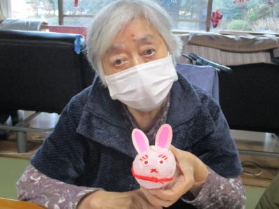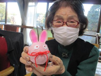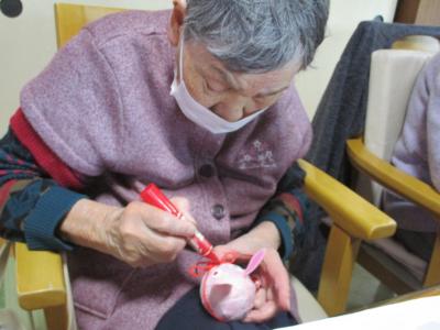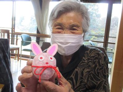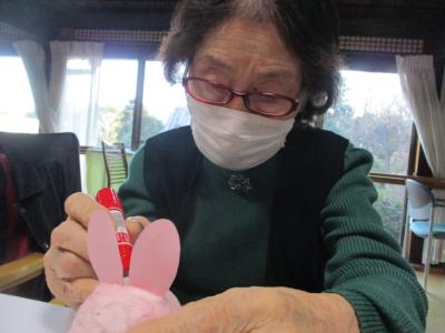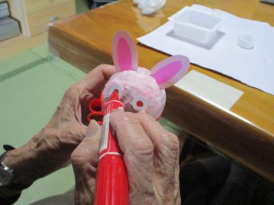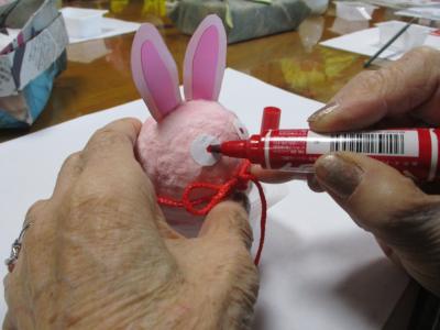耳や目、しっぽをつけて、今年の干支のうさぎさんの完成となりますよ