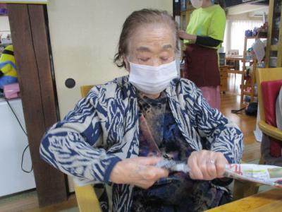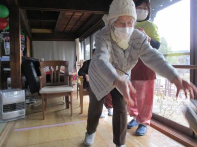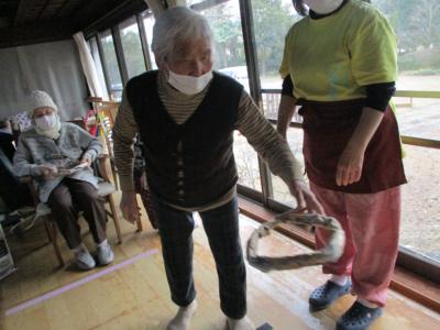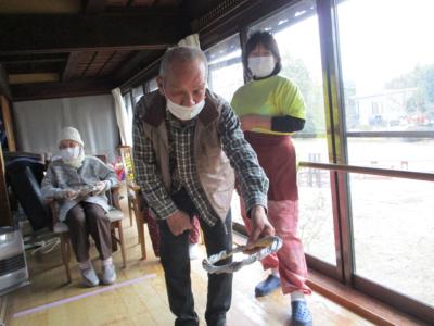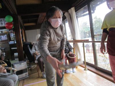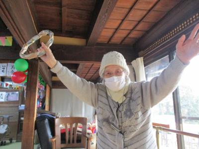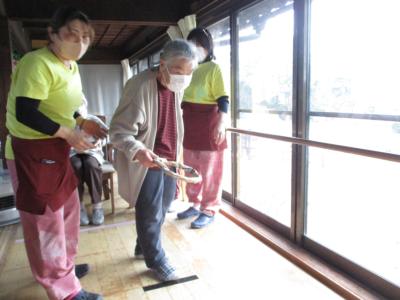 御年100歳の母の掛け声で輪投げ大会スタートです