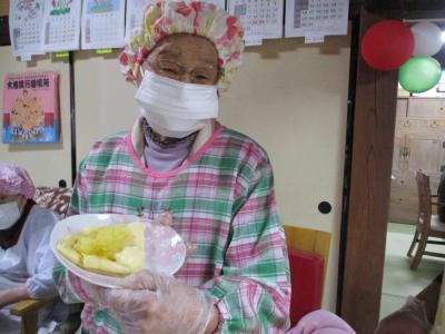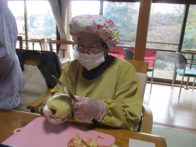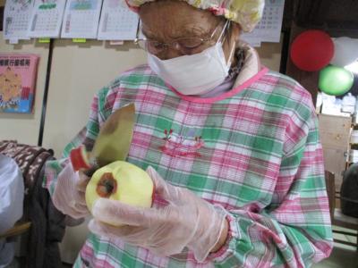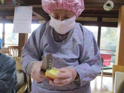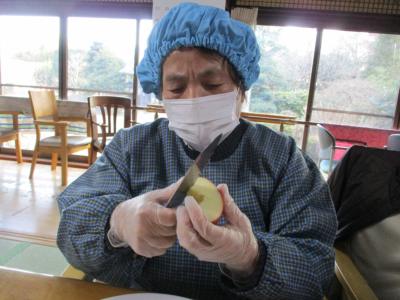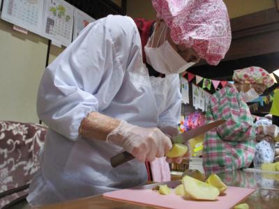 リンゴは数がたくさんあったので、母たち協力して細かくカットしてくださいました