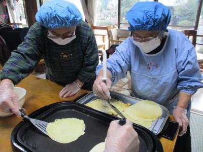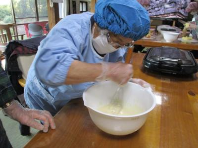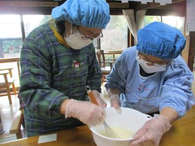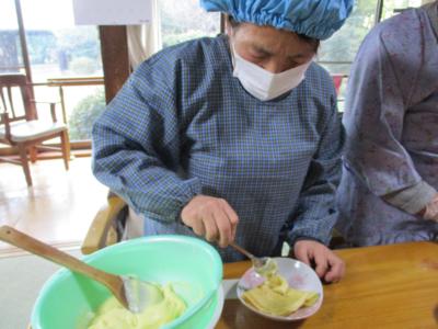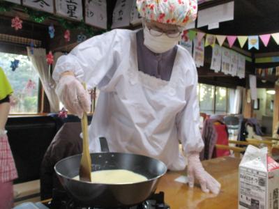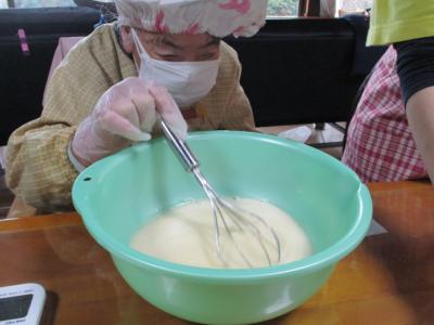 母たちには、こちらもトッピングにするカスタードクリームを作っていただきました