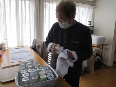 部屋の中では食後の食器拭きや洗濯物を干して下さる母