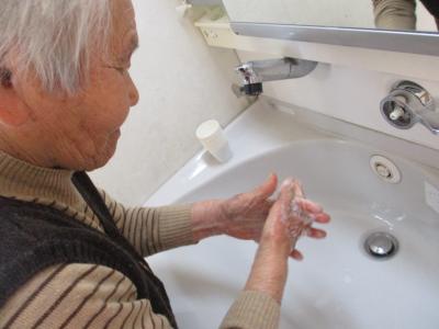 泡立てた石鹸で指と指の間や手首をよく洗い
