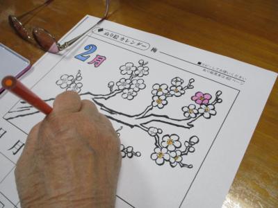 午後のお時間には、2月の暦を選んで塗り絵の時間となりました🖍