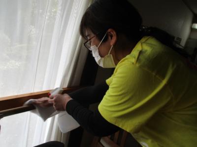 消毒をお願いし、感染予防対策の協力をしていただいて