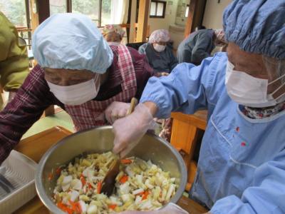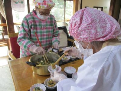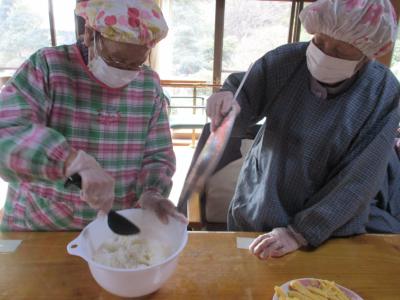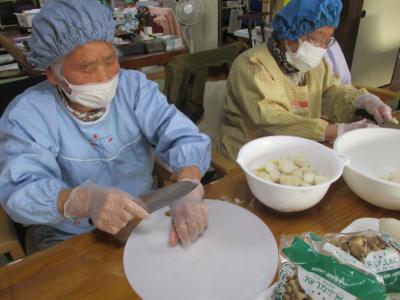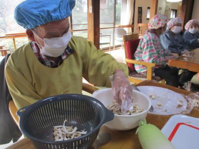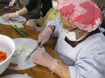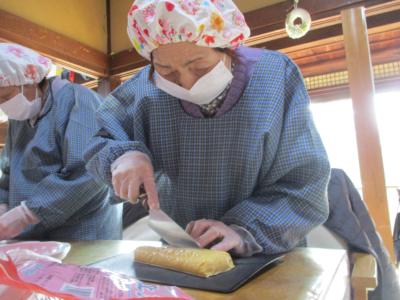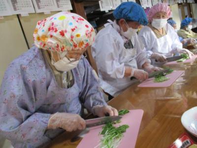 皆で分担してけんちん汁の材料や恵方巻の具材を切っていきます