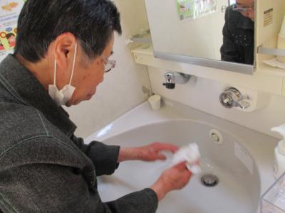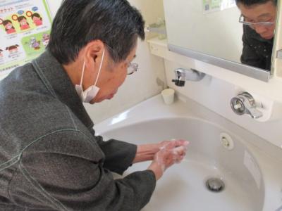 石鹸を付け指と指の間、爪、手首、しっかりと洗います