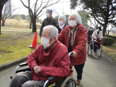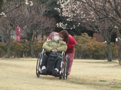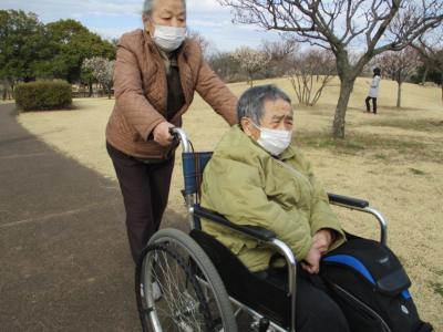 ご夫婦で車いす押しながらの散策です