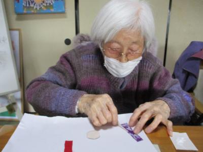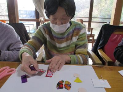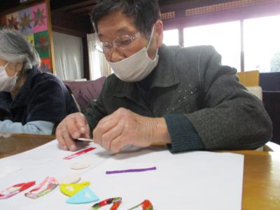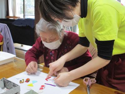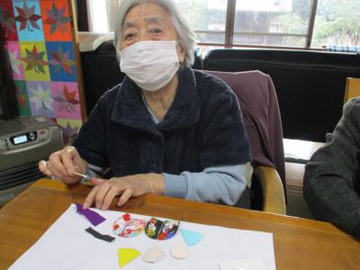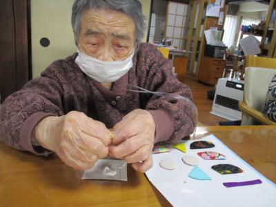 手工芸のお時間では、季節の押し絵作りの続きを取り組まれました