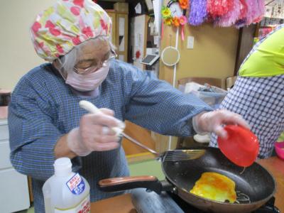 フライパンに溶き卵を流し入れ、薄焼き卵を焼いて下さる母・・・