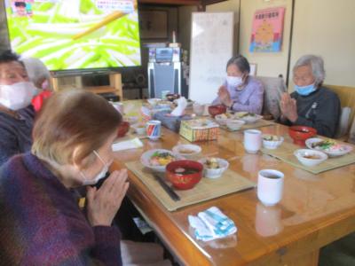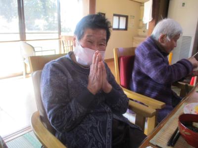 (-人-) ご馳走を前に、両手を合わせる皆さん・・・・