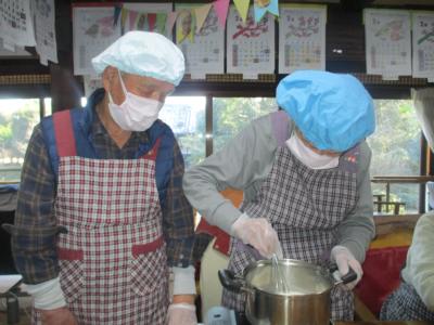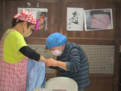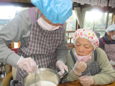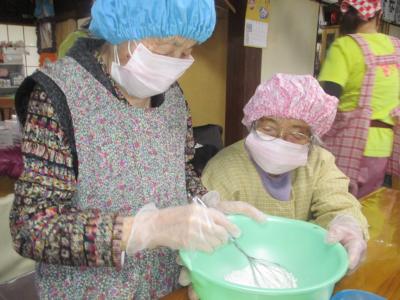 こちらの母たちは、白玉粉を計量し水で溶いて下さっています