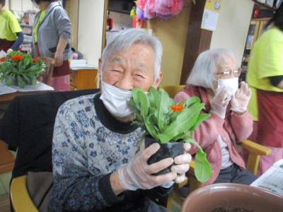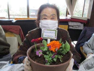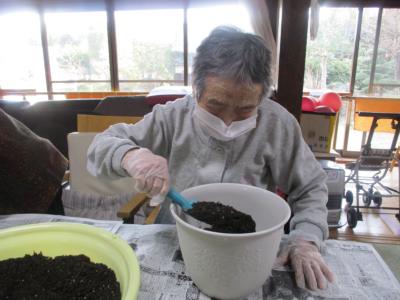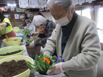 丁寧な手付きで寄せ植えを楽しむ皆さんです