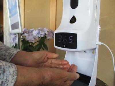 お店に着いて、お部屋に入る前に検温を行い手指消毒を行います!