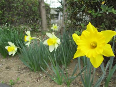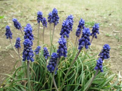 ムスカリと春の花が咲き出し幸望庵の庭も