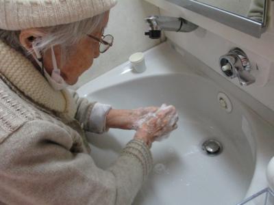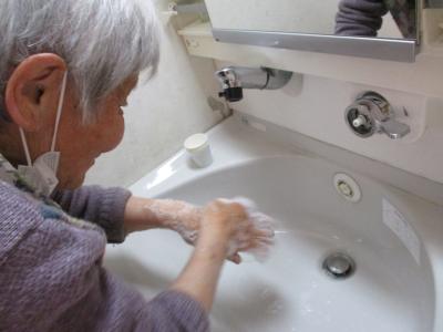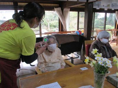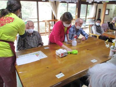 テーブルや手すり等の消毒は一日4回行い感染予防対策に努めています