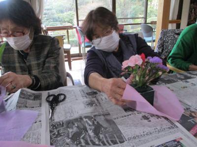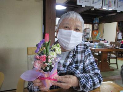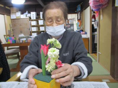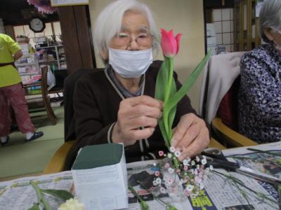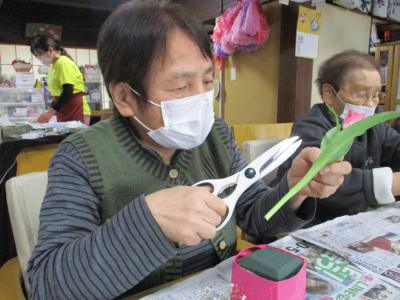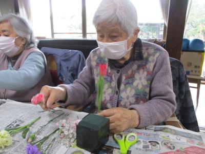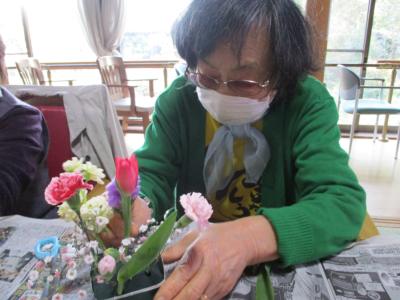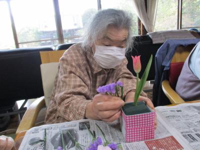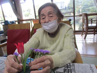 今日のレクは久しぶりのフラワーアレンジメント🌹