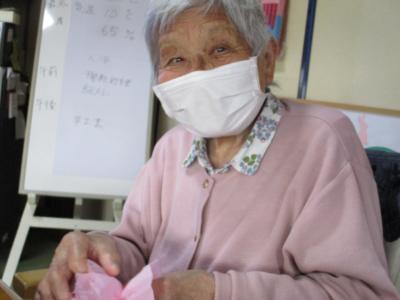 今日は、来月【百寿】を迎えるご利用者様のお祝いの準備を進めて行きたいと思います!