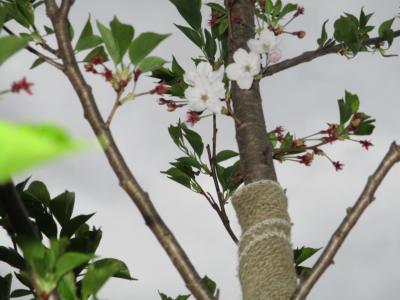 今年仲間入りした桜の木も、名残惜しそうに4輪ほど咲いている他はすっかり葉桜に姿を変えています