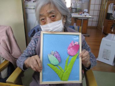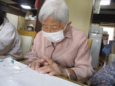 午前中は、手工芸組・脳トレ組・機能訓練組と分かれてそれぞれ熱心な取り組みを見せて下さいました