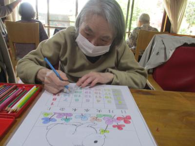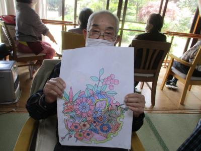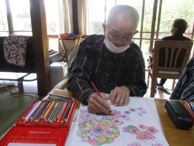 塗り絵組のお母さんは、今月のカレンダー塗り絵完成目前です!