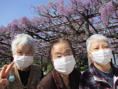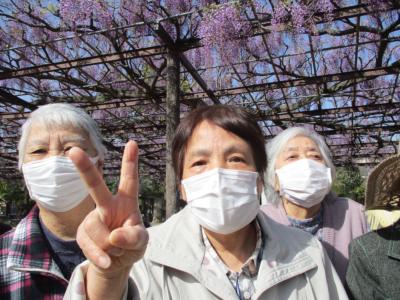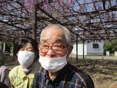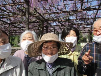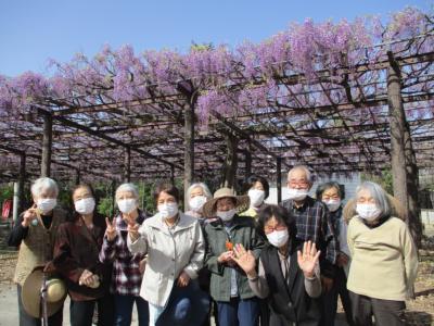仲間と会話を弾ませ、心を通わせながら藤の花鑑賞を楽しまれていました