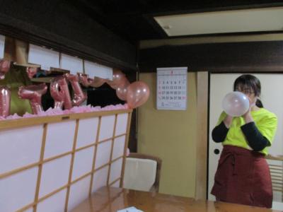 風船を必死で膨らませるあみちゃん